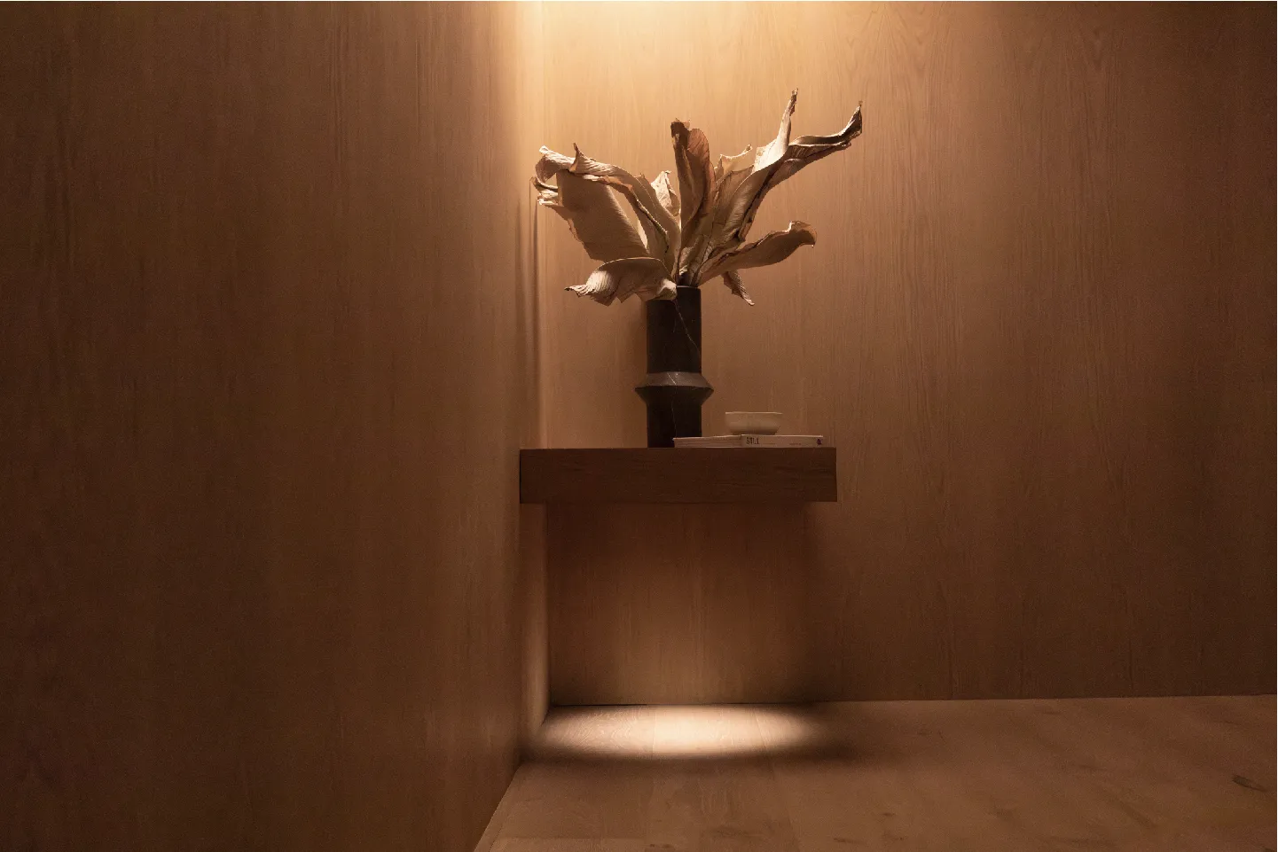 La iluminación, uno de los pilares de diseño principales, resalta las texturas y las piezas clave del mobiliario, convirtiendo cada área en una experiencia sensorial única.